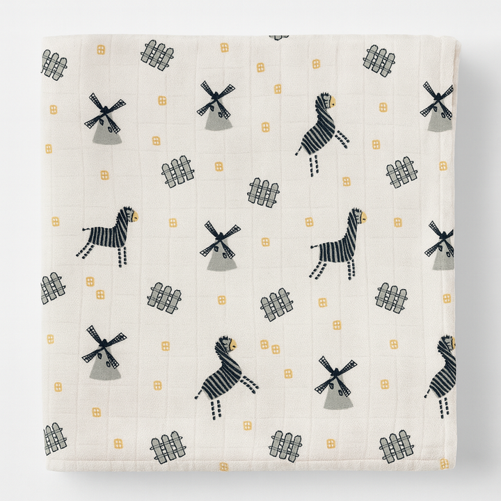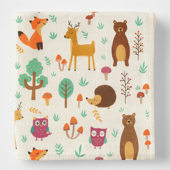 De doeken zijn versierd met lieve, speelse prints – van bosdiertjes tot zebra’s en konijntjes – en brengen een vleugje vrolijkheid in elke babykamer. Praktisch, stijlvol en veelzijdig in gebruik.